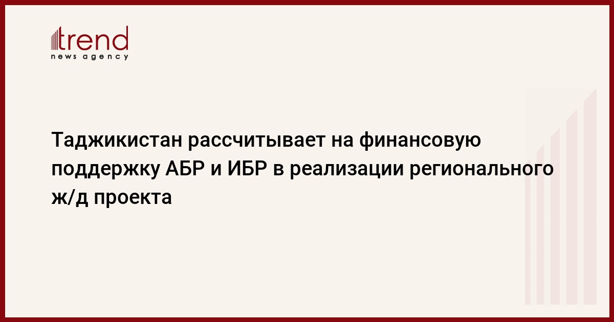 Правительство Таджикистана рассчитывает на финансовую поддержку Исламского и Азиатского банков развития в реализации проекта по строительству таджикского участка железной дороги, которая соединит Таджикистан, Афганистан и Туркменистан, сообщили ИА "Авеста" в министерстве транспорта страны.