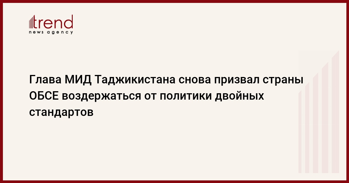 Министр иностранных дел Таджикистана призвал страны-участницы ОБСЕ воздержаться от ведения политики двойных стандартов, выступая на 25-ой сессии Совета министров иностранных дел ОБСЕ 6 декабря в Милане, сообщает департамент информации МИД РТ, передает Trend со ссылкой на news.tj.