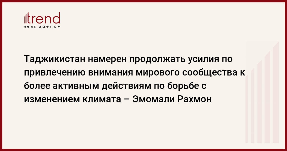 БАКУ/Trend/ - Таджикистан намерен продолжать усилия по привлечению внимания мирового сообщества к более активным действиям по борьбе с изменением климата. Как сообщает Trend, об этом сказал Президент Таджикистана Эмэмали Рахмон в ходе заседания высокого уровня по проблемам воды и климата.