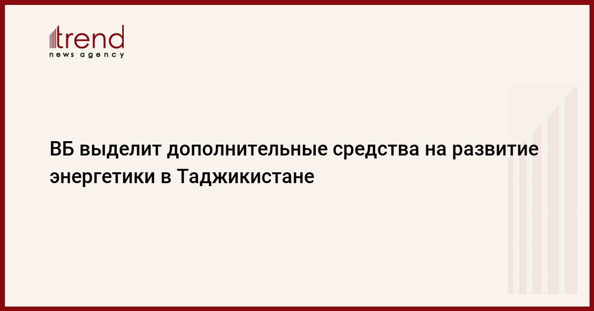БАКУ /Trend/ - Всемирный банк (ВБ) утвердил дополнительный грант на сумму 80 миллионов долларов в рамках текущего проекта развития сферы энергетики в Таджикистане, передает Trend со ссылкой на пресс-службу ВБ.