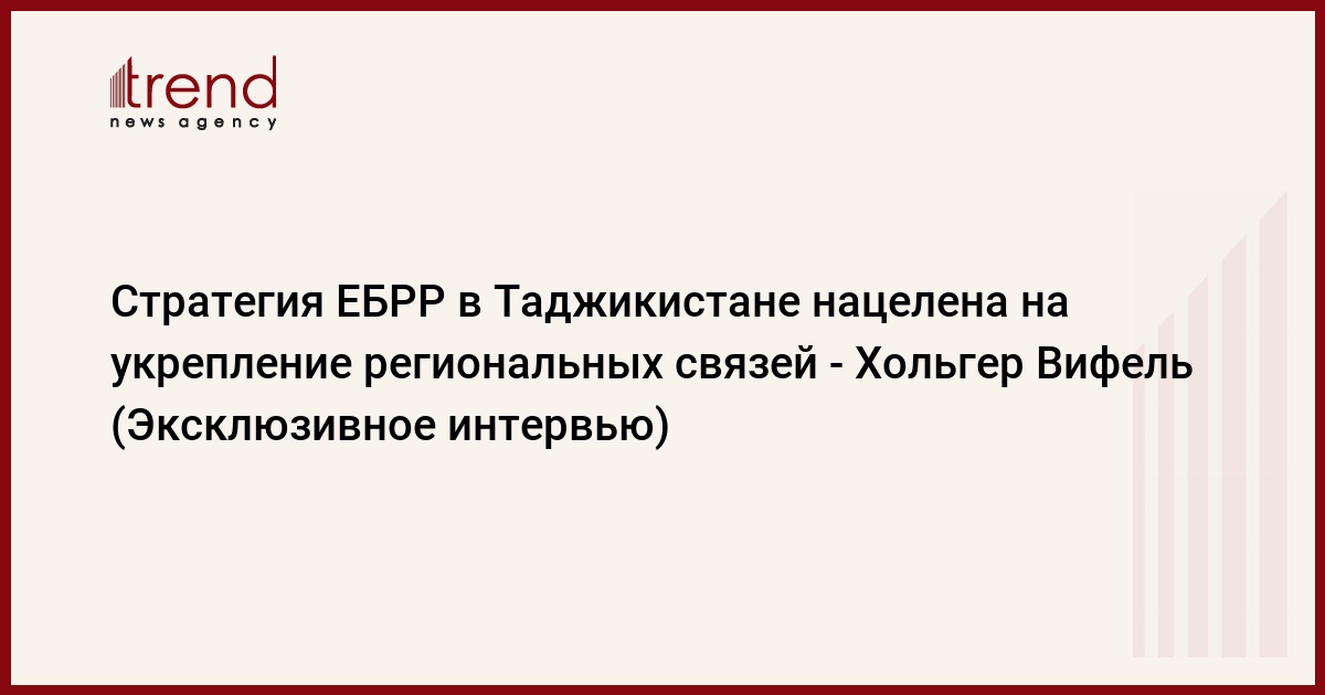 Об этом в эксклюзивном интервью Trend сказал глава представительства ЕБРР в Таджикистане Хольгер Вифель.