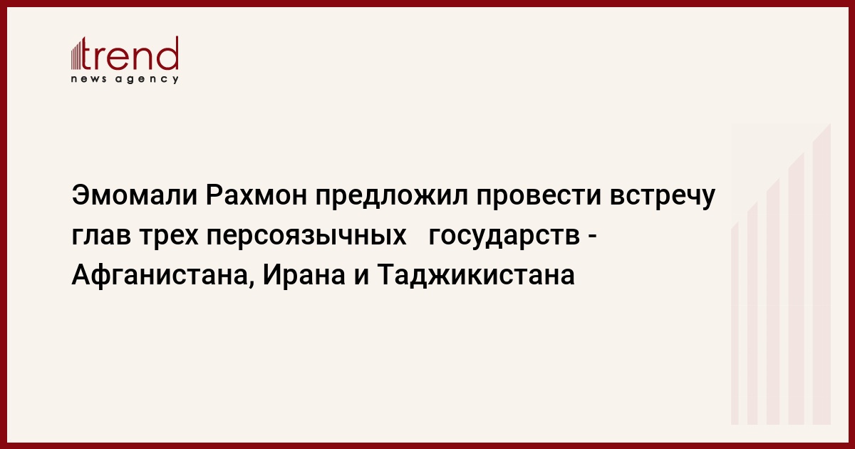 Президент Таджикистана Эмомали Рахмон выступил с инициативой проведения в ближайшее время встречи глав трех персоязычных государств - Афганистана, Ирана и Таджикистана. На этой встрече Рахмон предлагает обсудить реализацию договоренностей, достигнутых на первом персоязычного саммите в июле прошлого года в Душанбе и наметить