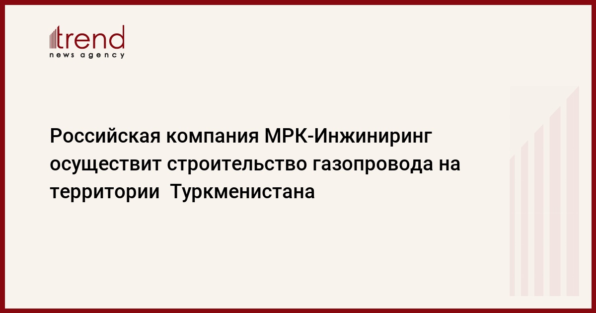 Строительство газопроводной магистрали на территории Туркменистана стоимостью в 176,5 миллиона долларов осуществит российское общество с ограниченной ответственностью "МРК-Инжиниринг".