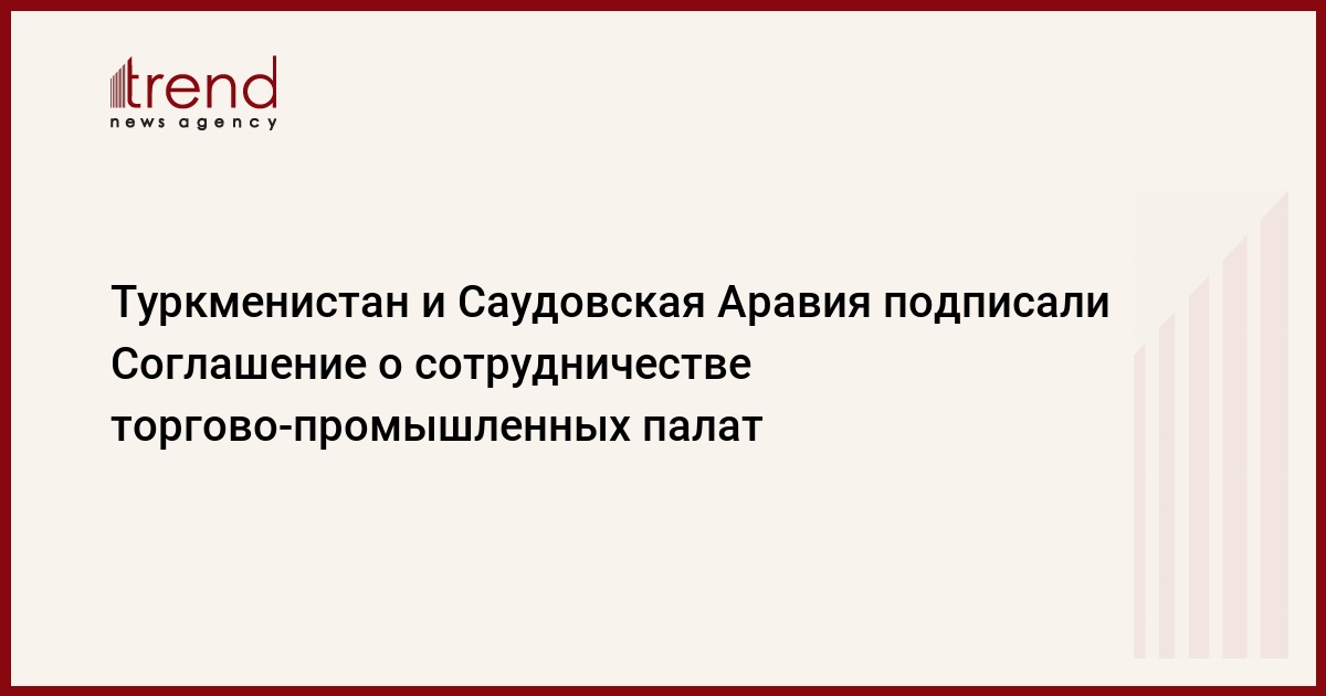 Туркменистан, Ашхабад, 28 мая /корр. Trend Г.Гасанов/ В Ашхабаде подписано Соглашение о сотрудничестве между Торгово-промышленной палатой Туркменистана и Советом торгово-промышленных палат королевства Саудовская Аравия, сообщает официальный туркменский источник.