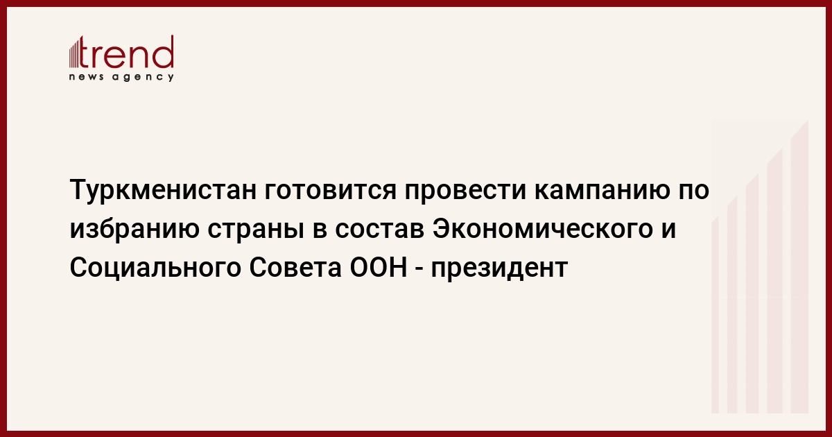 Туркменистан намерен выдвинуть свою кандидатуру в члены Экономического и Социального Совета ООН на период 2013-2015 годов, сообщил в субботу по местному ТВ президент страны Гурбангулы Бердымухамедов.