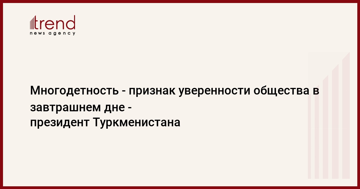 Многодетность - признак уверенности общества в завтрашнем дне - президент Туркменистана