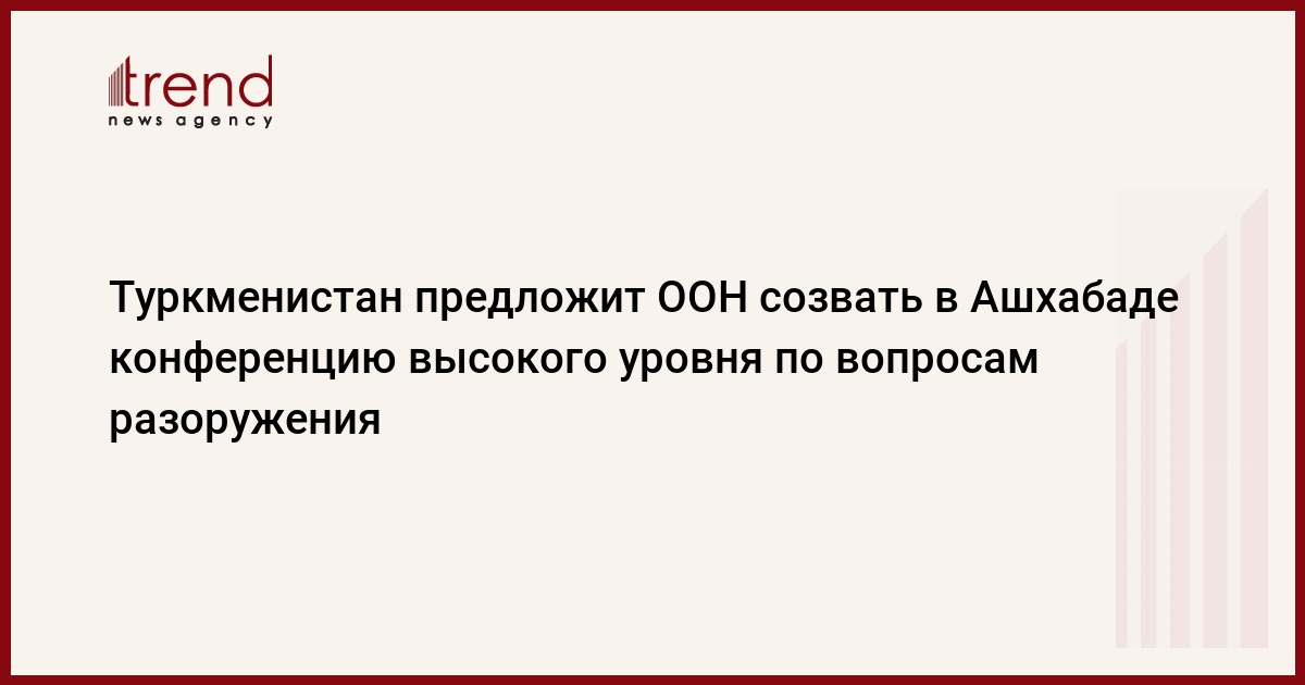В этом контексте предлагается рассмотреть вопрос о созыве в Ашхабаде конференции высокого уровня по вопросам разоружения. "Такая конференция, по нашему мнению, послужит важным шагом в выявлении и сближении различных подходов и мнений в сфере контроля и ограничения вооружений в регионе, в целом, обеспечения и упрочения системы региональной безопасности и стабильности", - сказано в материале.
