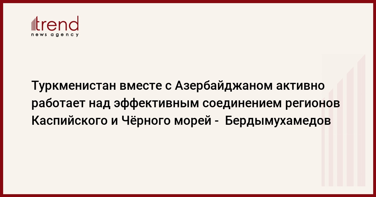 АШХАБАД /Trend/ - Вместе с Азербайджаном, мы активно работаем над эффективным соединением регионов Центральной Азии, Каспийского и Чёрного морей, сказал президент Туркменистана Гурбангулы Бердымухамедов в Ашхабаде на заседании Совета глав правительств СНГ, сообщает Trend со ссылкой на госагентство «Туркмен довлет хабарлары».
