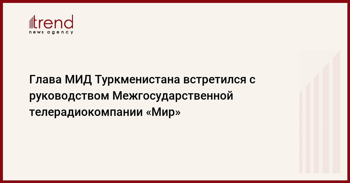 БАКУ /Trend/ - 23 ноября 2020 года Министр иностранных дел Туркменистана Р.Мередов встретился по видеоконференцсвязи с Председателем Межгосударственной телерадиокомпании «Мир» Р.Батыршиным, передает Trend.