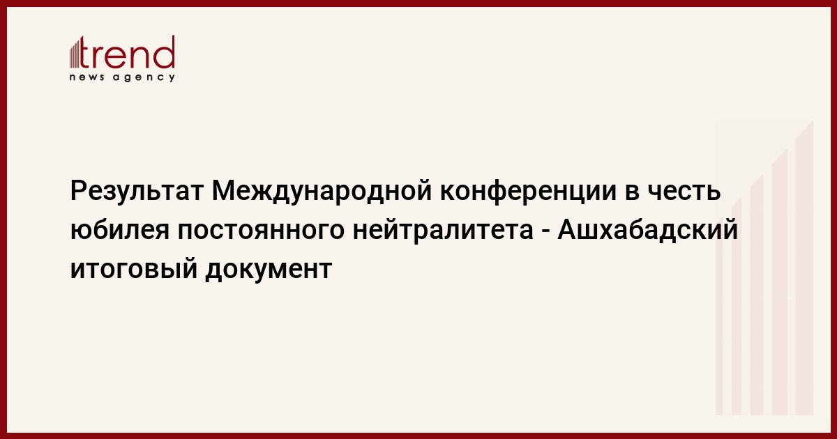 Так, по итогам Международной конференции «Политика нейтралитета и ее значение в обеспечении международного мира, безопасности и устойчивого развития» принят Ашхабадский итоговый документ.