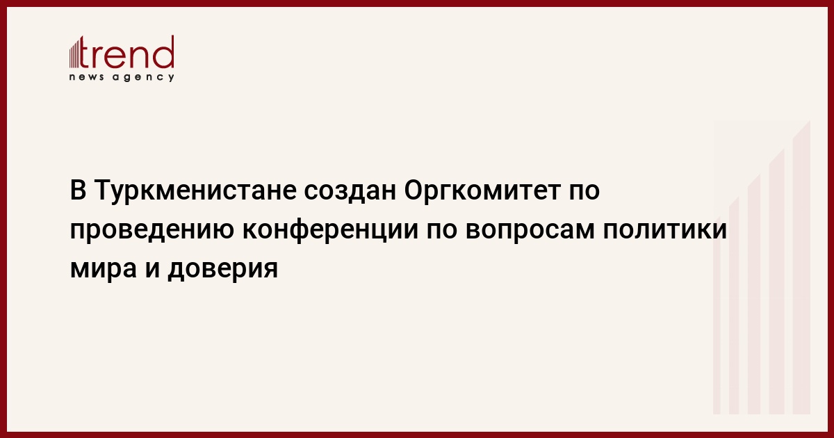 БАКУ /Trend/ - В Туркменистане создан Оргкомитет по проведению конференции по вопросам политики мира и доверия, передает Trend со ссылкой на посольство Туркменистана в Азербайджане.