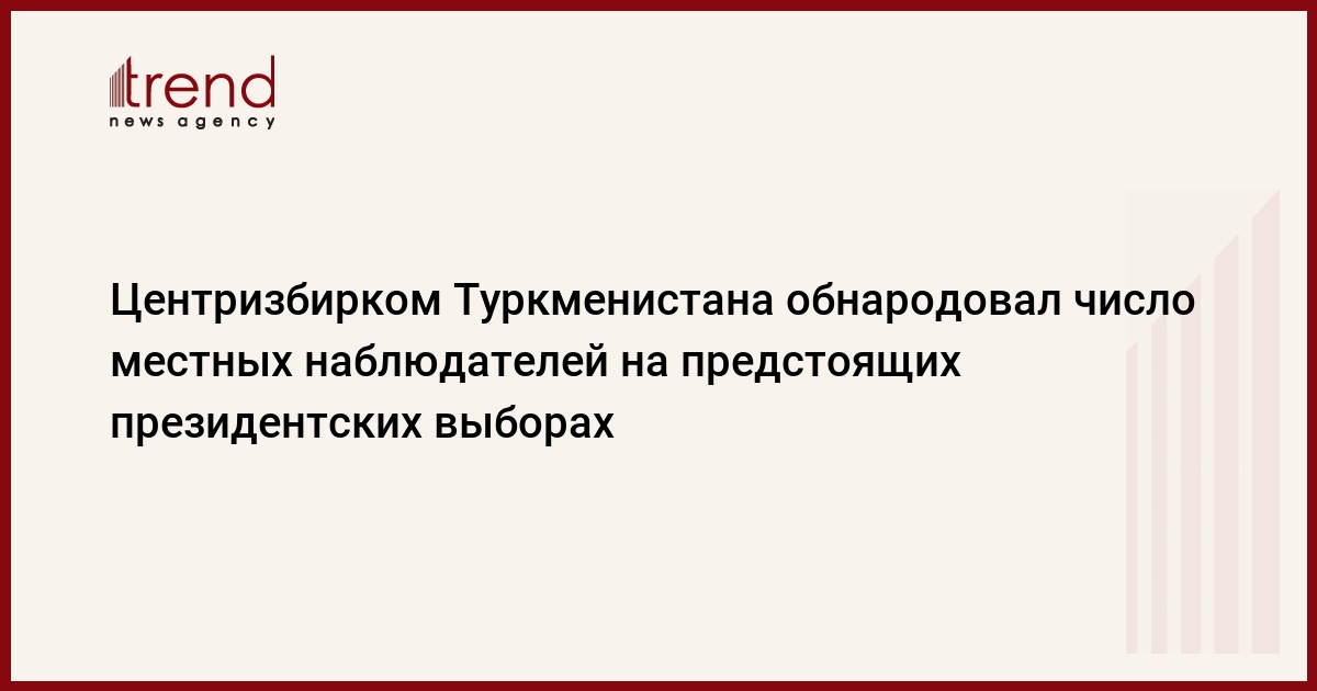 БАКУ /Trend/ - Центральная избирательная комиссия Туркменистана зарегистрировала 2 726 национальных наблюдателей на президентских выборах, которые состоятся 12 марта 2022 года, сообщает Trend в пятницу со ссылкой на комиссию.