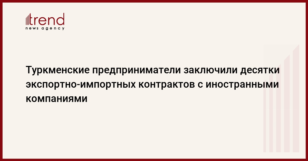 БАКУ /Trend/ - Туркменские предприниматели заключили 63 экспортно-импортных контракта и соглашения с иностранными компаниями на общую сумму около 145,3 миллиона долларов США, передает в среду Trend со ссылкой на Turkmenportal.