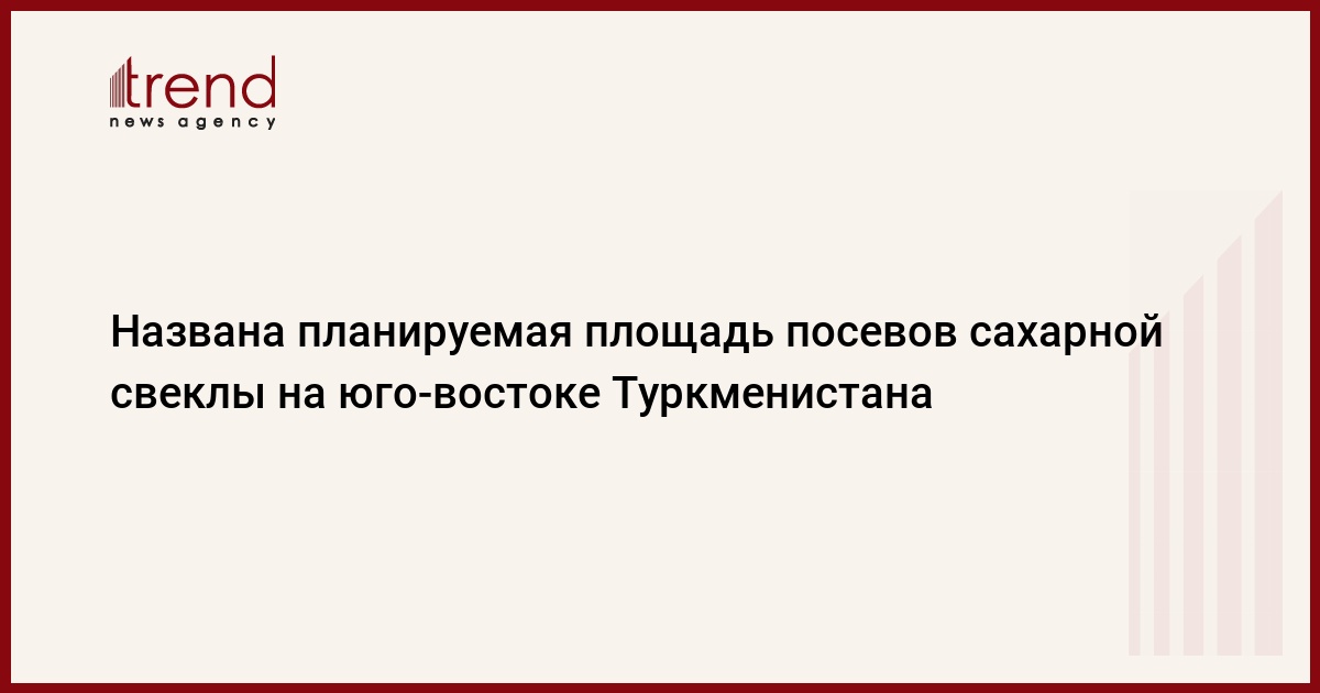 БАКУ /Trend/ - Обнародована планируемая площадь посевных земель под сахарную свеклу в Марыйском регионе на юго-востоке Туркменистана, передает Trend в четверг со ссылкой на Jeyhun News.