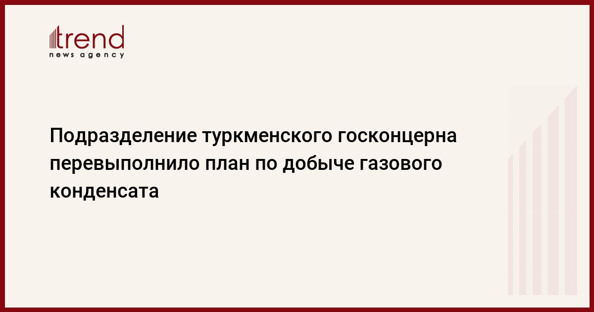 БАКУ /Trend/ - Управление "Gamyşlyjanebit" государственного концерна "Туркменнебит" (Туркменнефть) в Туркменистане в январе - августе 2022 года перевыполнило план по добыче газового конденсата, передает Trend во вторник со ссылкой на Jeyhun News.
