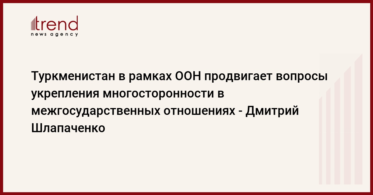 БАКУ /Trend/ - Туркменистан в рамках ООН продвигает вопросы, нацеленные на укрепление многосторонности в межгосударственных отношениях и мировой экономике.