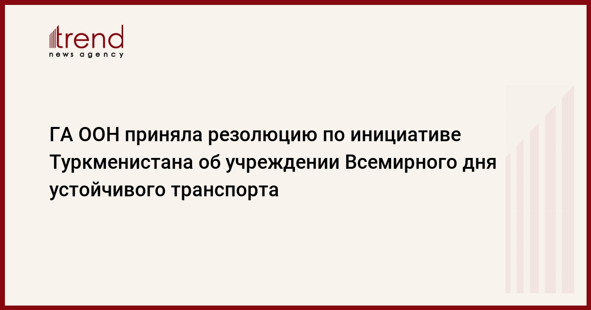 БАКУ /Trend/ - 16 мая 2023 года в ходе 70-го пленарного заседания 77-й сессии Генассамблеи ООН была принята по инициативе Туркменистана резолюция о провозглашении дня проведения первой Глобальной конференции по устойчивому транспорту в Ашхабаде 26 ноября 2016 года Всемирным днём устойчивого транспорта, сообщает во вторник Trend.