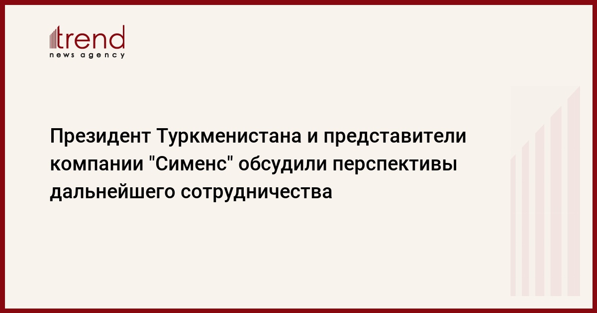 В ходе беседы, по информации Государственной службы новостей (ТДХ), глава государства отметил, что "Сименс" - давний надежный партнер независимого Туркменистана. Hа счету компании - оснащение по последнему слову техники практически всех новых крупных медицинских центров и клиник страны. Высоко оценивая уровень многолетнего взаимовыгодного партнерства, Сапармурат Hиязов акцентировал внимание на том, что оно остается приоритетным направлением в реализации крупномасштабной преобразовательной программы в области национального здравоохранения, сообщает Trend со ссылкой на Turkmenistan.ru.