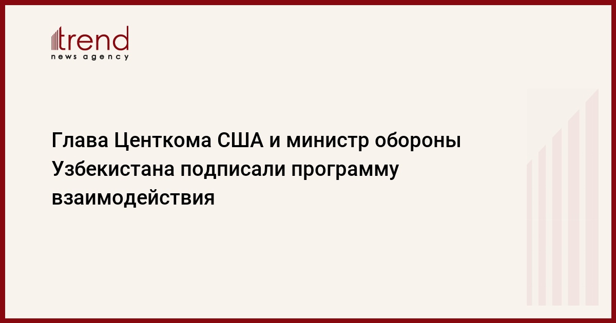 Глава Центрального командования США генерал Джеймс Маттис и министр обороны Узбекистана генерал-майор Кабул Бердиев подписали программу взаимодействия в области безопасности между Центкомом и Минобороны Узбекистана на 2011 год, сообщается в узбекских СМИ.