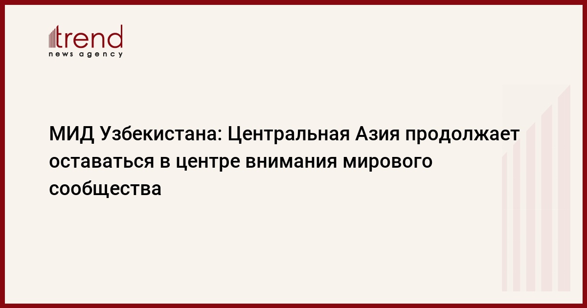 МИД Узбекистана: Центральная Азия продолжает оставаться в центре внимания мирового сообщества