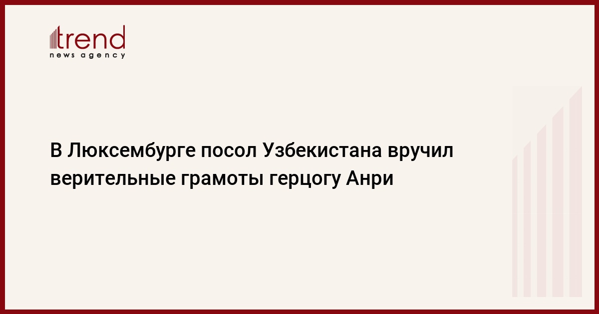 Посол Узбекистана в Люксембурге с резиденцией в Брюсселе Бахтияр Гулямов вручил верительные грамоты герцогу Люксембурга Анри, сообщило информагентство "Жахон" пр МИД республики.