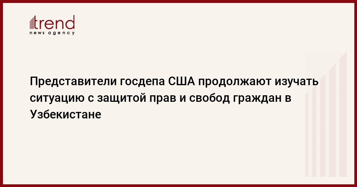 Делегация США во главе с заместителем помощника госсекретаря по вопросам демократии, прав человека и труда Джейн Зиммерман продолжает изучать ситуацию в сфере прав человека в Узбекистане.