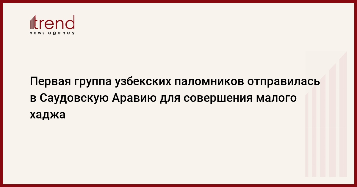 Первая группа узбекских паломников в составе 255 человек отправилась в понедельник чартерным рейсом авиакомпании "Узбекистон хаво йуллари" в Саудовскую Аравию для совершения малого паломничества - Умра в сезон Рамадан, сообщила пресс-служба комитета по делам религий при Кабинете министров Узбекистана.