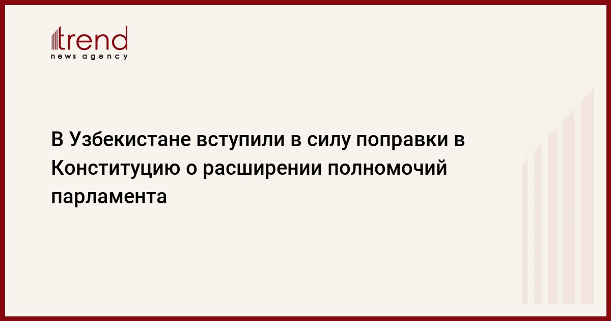 В Узбекистане вступили в силу поправки в Конституцию страны о расширении полномочий парламента и повышении ответственности правительства.