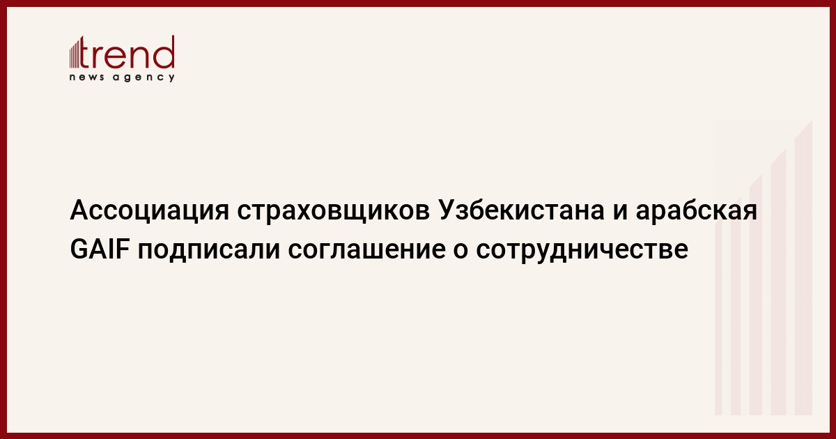 Соглашение о сотрудничестве подписали во вторник Ассоциация профессиональных участников страхового рынка Узбекистана и Генеральная арабская страховая федерация (GAIF).