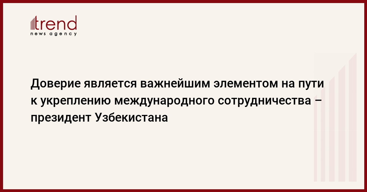 Президент Узбекистана выразил убеждение, что доверие - это тот важнейший элемент и обязательное условие, без которого практически невозможно достичь поставленных целей в любом переговорном процессе по восстановлению мира и стабильности. Однако, как об этом свидетельствуют экспертные оценки, в современном мире и, в первую очередь, в международных отношениях, взаимное доверие не только не растет, но и снижается.