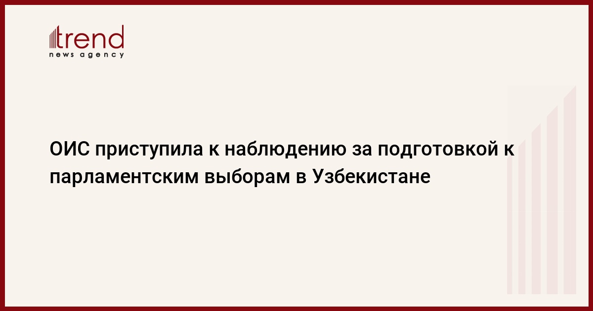 ТАШКЕНТ /Trend/ - Миссия наблюдателей Организации исламского сотрудничества (ОИС) приступила к деятельности в рамках наблюдения за парламентскими выборами в Узбекистане, сообщили Trend в пятницу в Центризбиркоме страны.