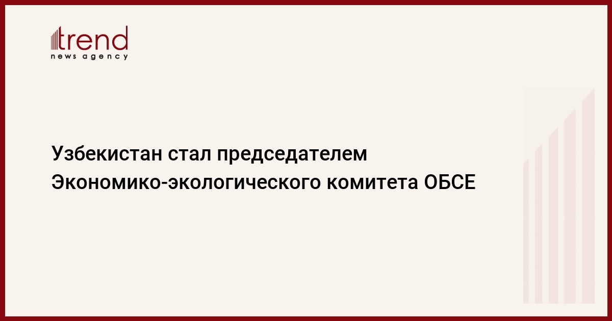 БАКУ/Trend/ - Узбекистан назначен председателем Экономико-экологического комитета Постоянного совета Организации по безопасности и сотрудничеству (ОБСЕ) в 2020 году, сообщает Trend со ссылкой на пресс-службу министерства иностранных дел Узбекистана.