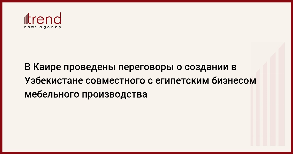 Прорабатываемый проект, как планируется, станет второй успешной историей узбекско-египетской кооперации в мебельном производстве после создания в Кашкадарьинской области узбекско-египетского совместного предприятия «Autoway» по производству мебели.