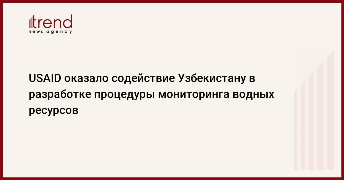 БАКУ /Trend/ - Агентство США по международному развитию (USAID) оказало содействие по разработке процедуры учета, отчетности и мониторинга водных ресурсов в Узбекистане.