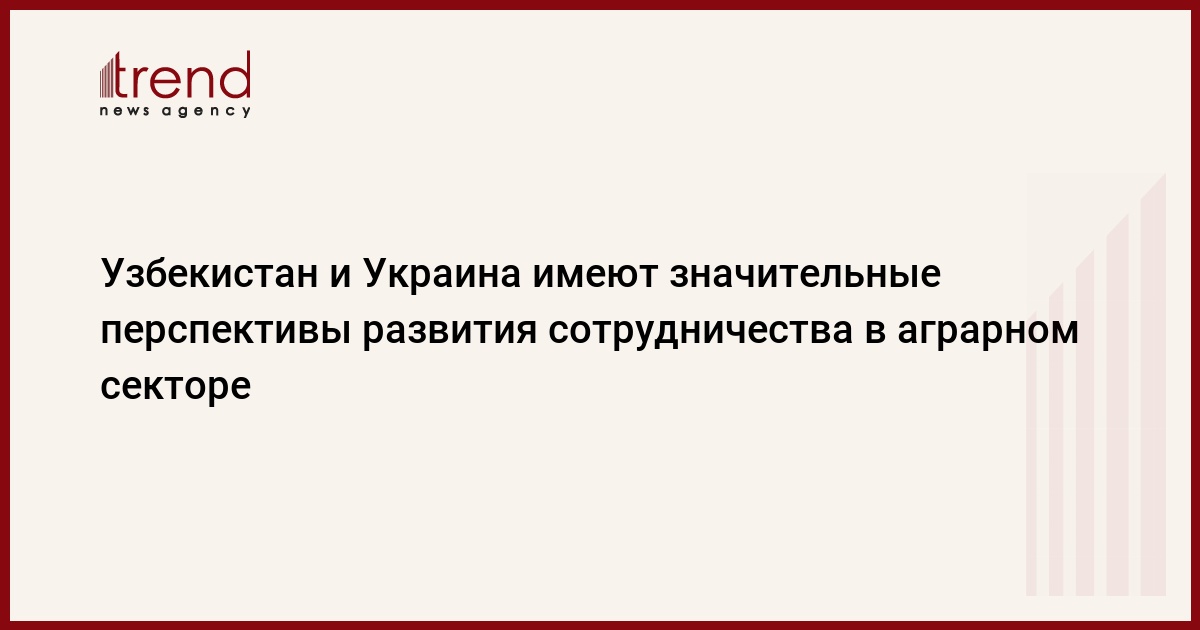 БАКУ /Trend/ - На сегодня аграрный сектор обеих стран при условии всестороннего государственного содействия имеет значительные перспективы для совместного сотрудничества, призванного расширить украинско-узбекские деловые отношения и привлечь инвестиции в экономику обеих стран.