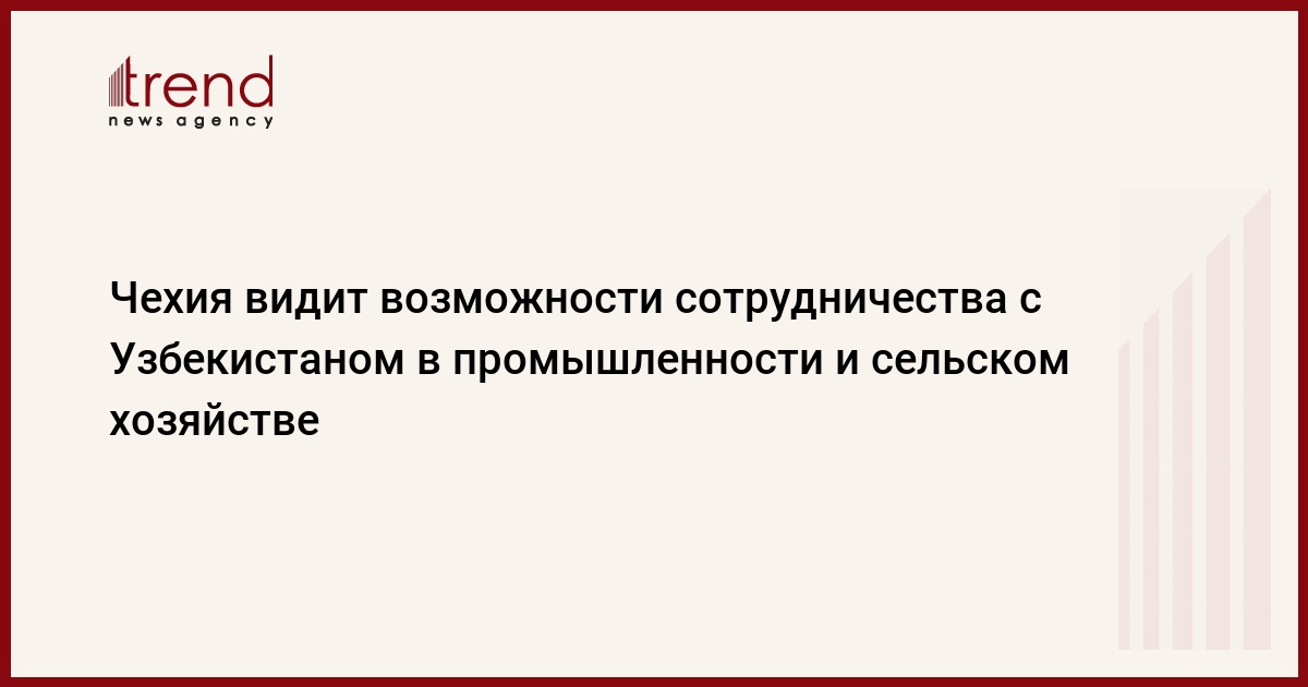 БАКУ /Trend/ - Модернизация промышленности и сельского хозяйства в Узбекистане представляет интерес для чешских компаний.