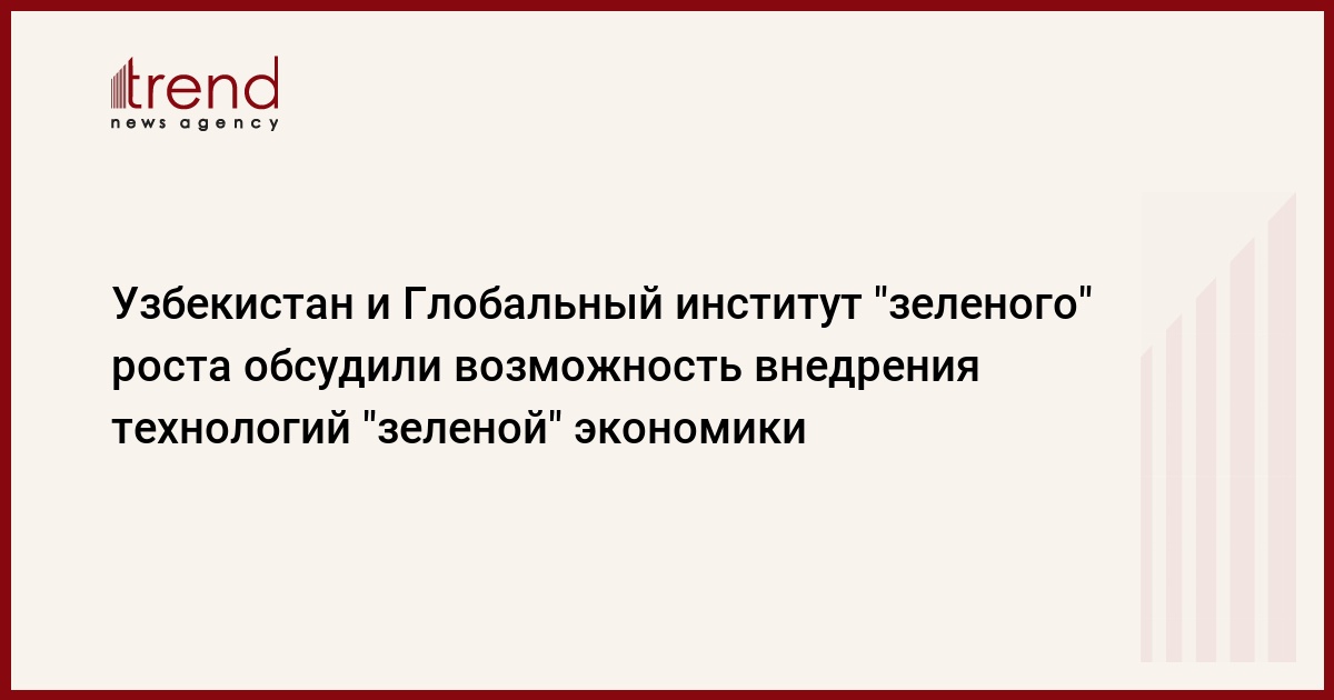 Сообщается, что стороны с удовлетворением подчеркнули, что Узбекистан стал первым в СНГ государством-членом Глобального института зеленого роста. В г. Ташкенте открылось первое представительство GGGI в Центральной Азии. Реализовано более десяти совместных мероприятий.
