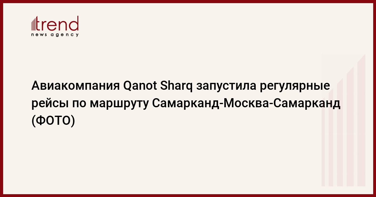 БАКУ /Trend/ - Авиакомпания "Qanot Sharq" запустила регулярные рейсы по маршруту Самарканд-Москва-Самарканд, сообщает в понедельник Trend.