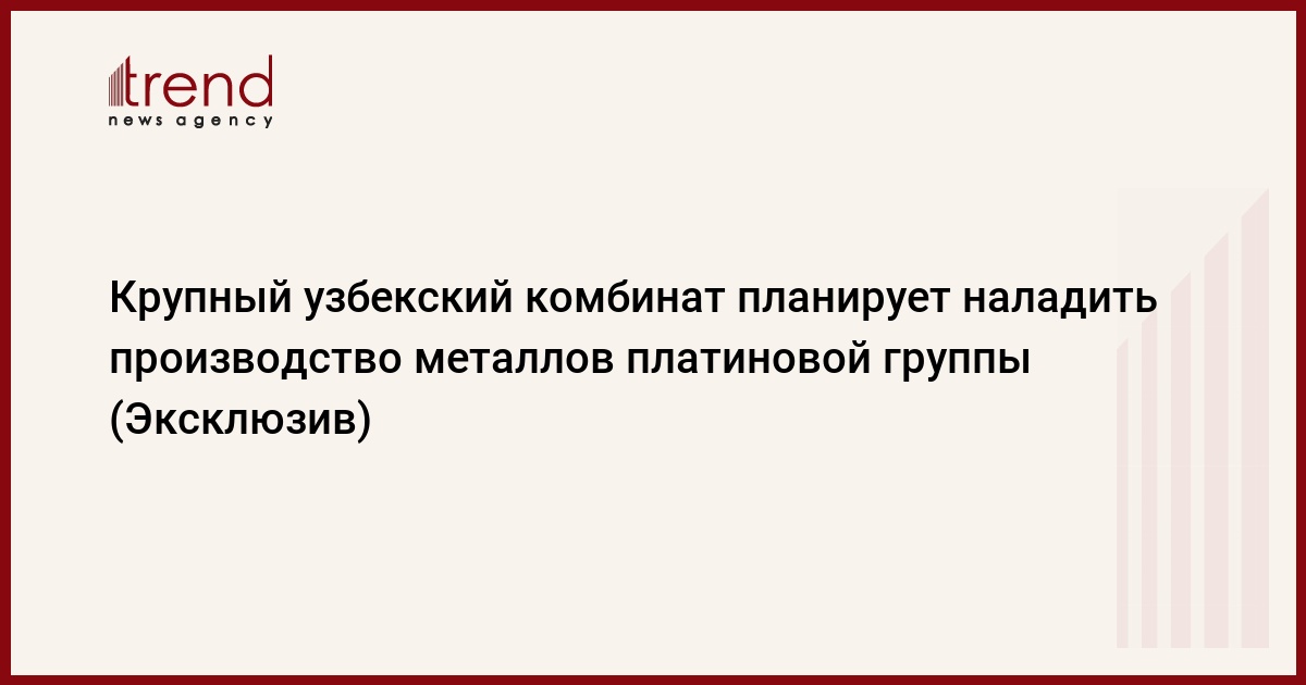 БАКУ /Trend/ - Алмалыкский горно-металлургический комбинат (АГМК) в Узбекистане планирует наладить производство металлов платиновой группы в промышленном масштабе.
