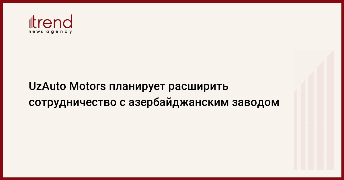 БАКУ /Trend/ - Узбекская UzAuto Motors и азербайджанский завод по производству автомобилей Azermash намерены увеличить совместное производство автомобилей Chevrolet.