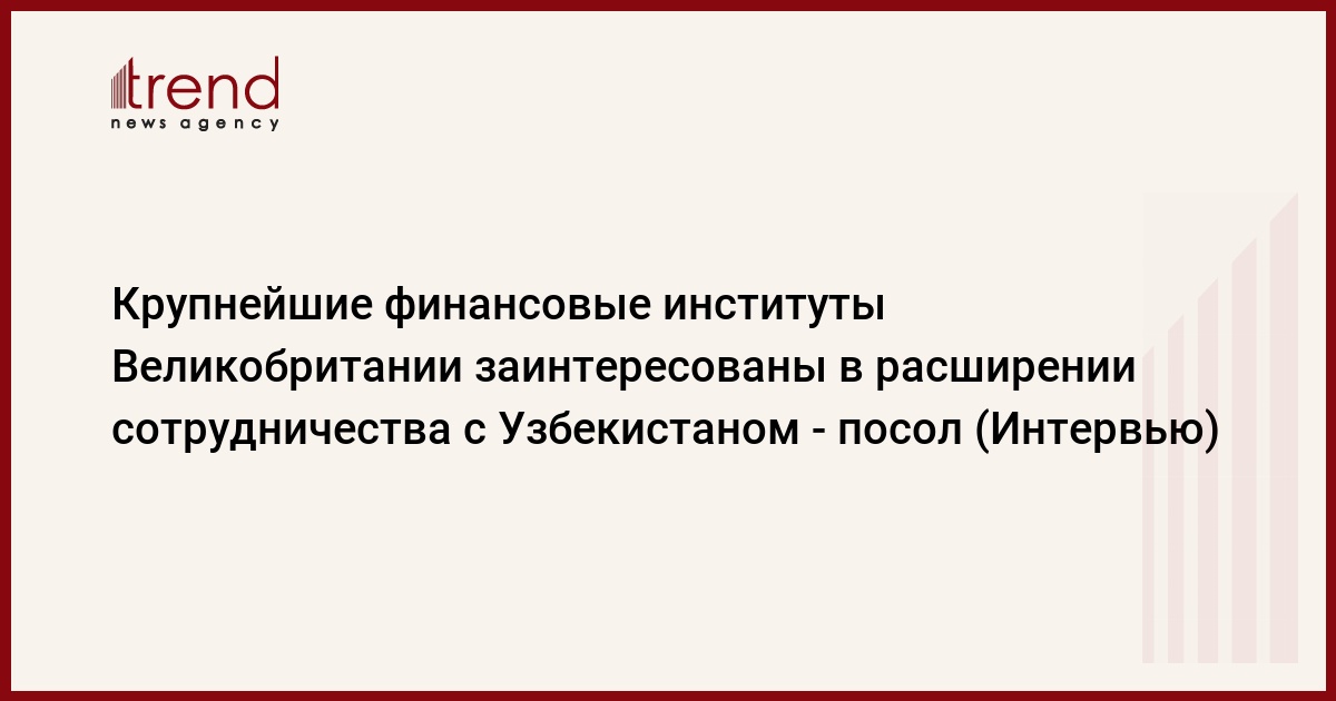 Об этом в эксклюзивном интервью Trend в понедельник сказал посол Великобритании в Узбекистане Тим Торлот.