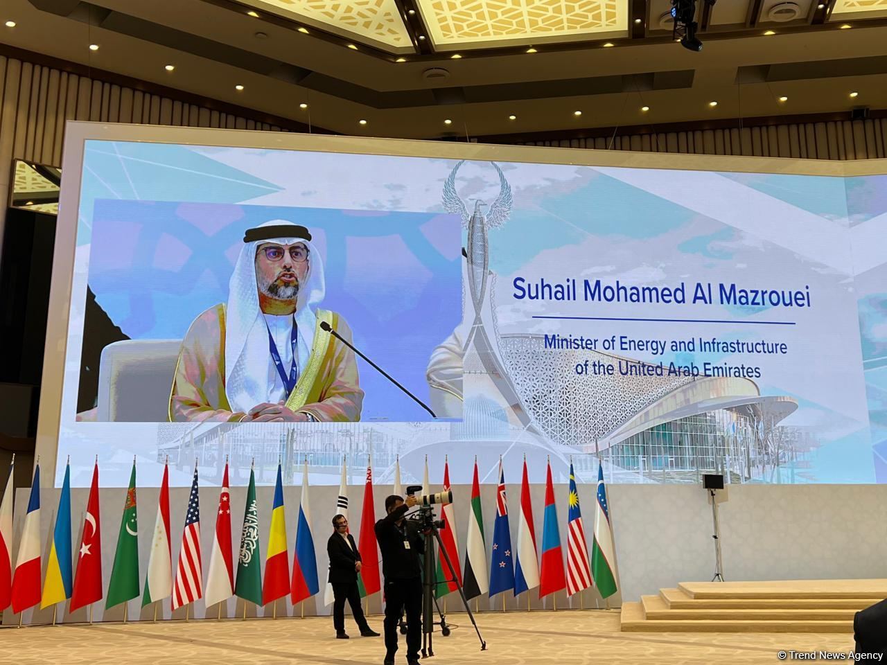 Как передает корреспондент Trend, об этом на открытии второго Ташкентского международного инвестиционного форума (TIIF-2023) сказал министр энергетики ОАЭ Сухейль аль-Мазруи.