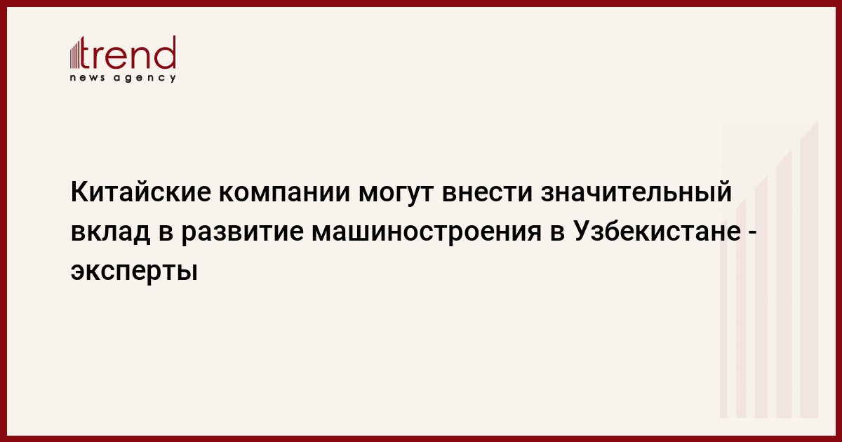 БАКУ /Trend/ - Китайские компании способны внести значительный вклад в развитие машиностроения в Узбекистане.