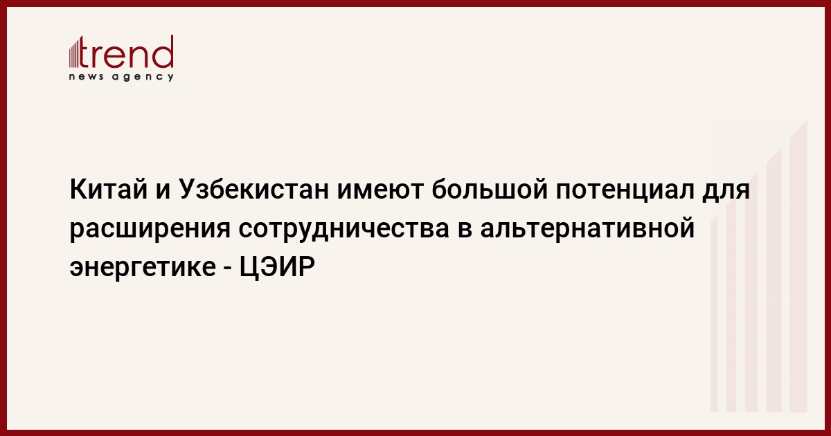 Как сообщили Trend в Центре экономических исследований и реформ (ЦЭИР) Узбекистана, с учётом технологического лидерства Китая в области солнечной, ветровой и гидроэнергетики, а также действующих финансовых инструментов поддержки проектов, научно-практическое сотрудничество между двумя странами в секторе возобновляемых источников энергии может быть значительно увеличено.