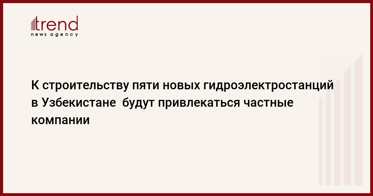 БАКУ /Trend/ - Компания "Узбекгидроэнерго" приступает к началу процесса закупки первого лота для новых гидроэлектростанций в Узбекистане на основе государственно-частного партнерства, передает Trend.