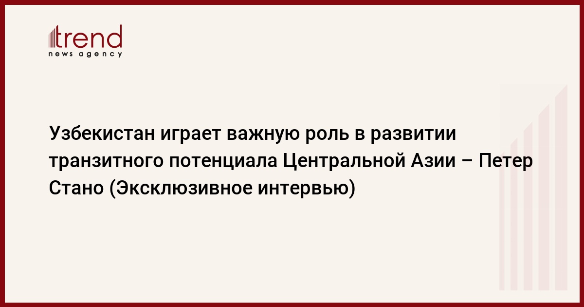 Говоря о развитии транзитного потенциала Узбекистана, Питер Стано заметил, что Узбекистан является единственной страной в Центральной Азии, имеющей границу с каждой из четырех других центральноазиатских стран, и играет ключевую роль в региональном сотрудничестве.