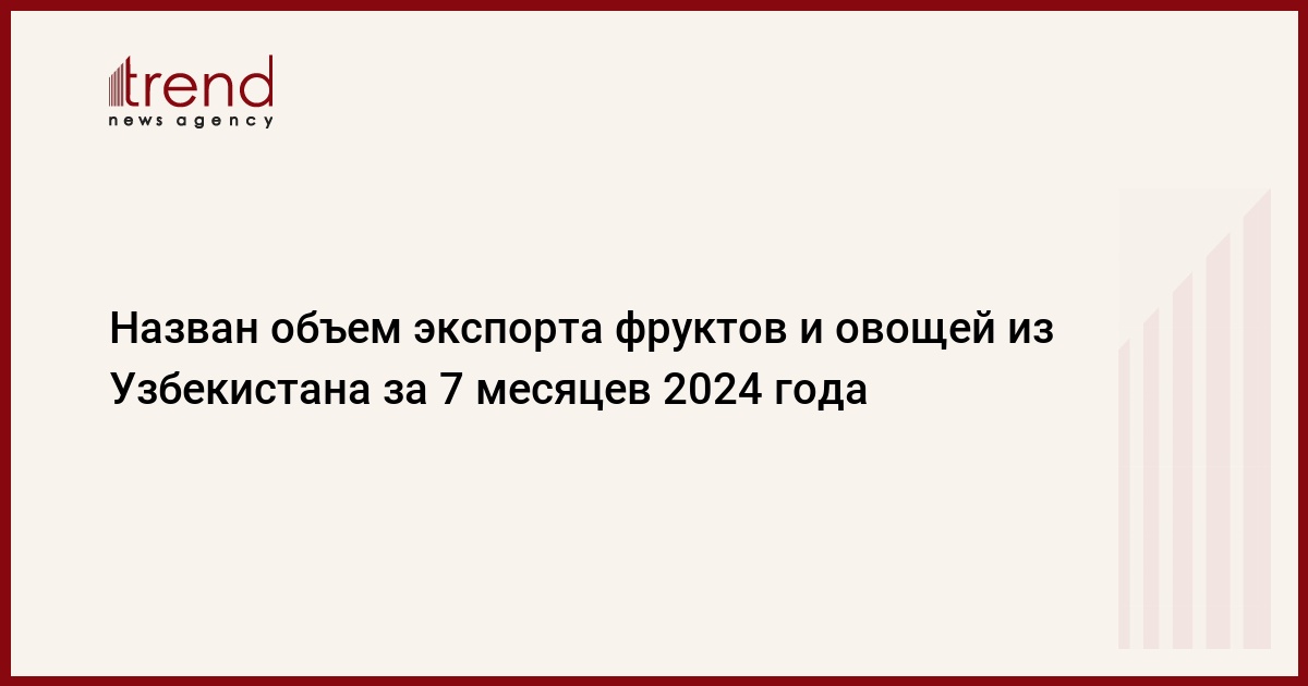 ТАШКЕНТ /Trend/ - С января по август 2024 года Узбекистан экспортировал 1,3 миллиона тонн фруктов и овощей на сумму 922,8 миллиона долларов США.