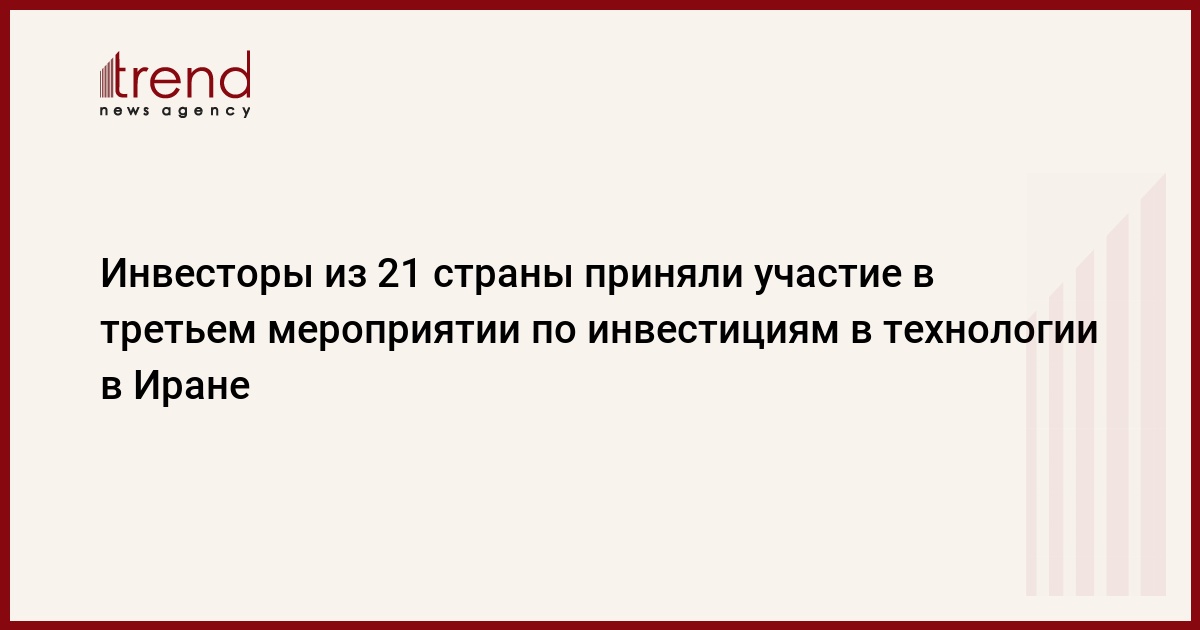 Заместитель секретаря Сети обмена и передачи технологий стран Исламской восьмёрки Милад Садрханлу сказал, что третье мероприятие по инвестициям в технологии (TIM 2020) состоится 17 и 18 февраля с участием 40 инвесторов из 21 страны, передает Trend со ссылкой на ИРНА.
