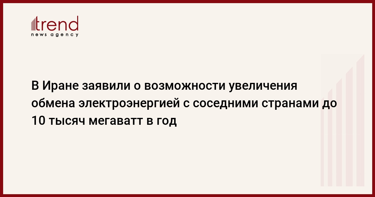 Министр энергетики Ирана Реза Ардаканиян сказал, что в настоящее время существует обменная мощность около 3500 МВт электроэнергии с соседними странами, которая может быть расширена до 10 000 МВт в соответствии с разработанными планами, передает Trend со ссылкой на ИРНА.