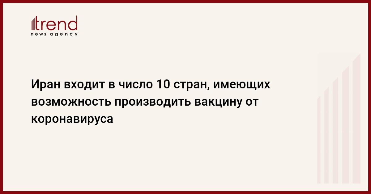 Иран входит в число 10 государств мира, имеющих возможность производить вакцину от коронавируса, сказал руководитель проекта вакцины COV-Iran Barekat в Штаб-квартире по исполнению приказа Имама Хомейни (HEIKO) Хасан Джалили, передает Trend со ссылкой на "Иран.Ru".